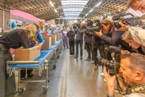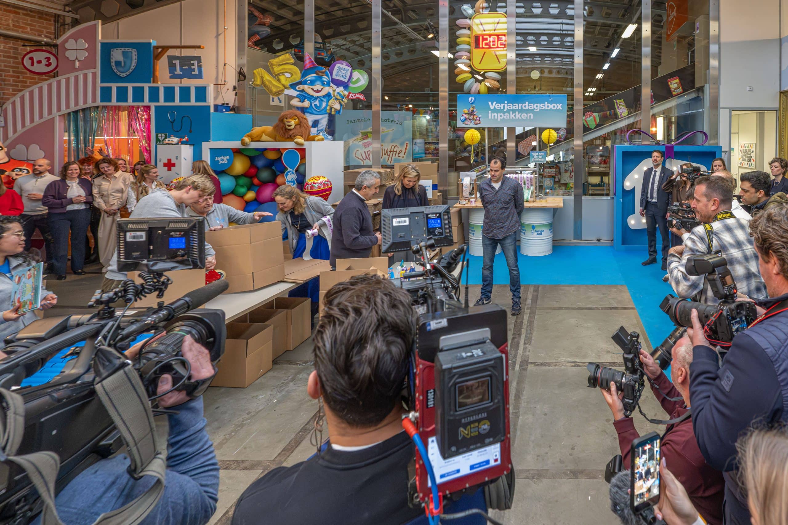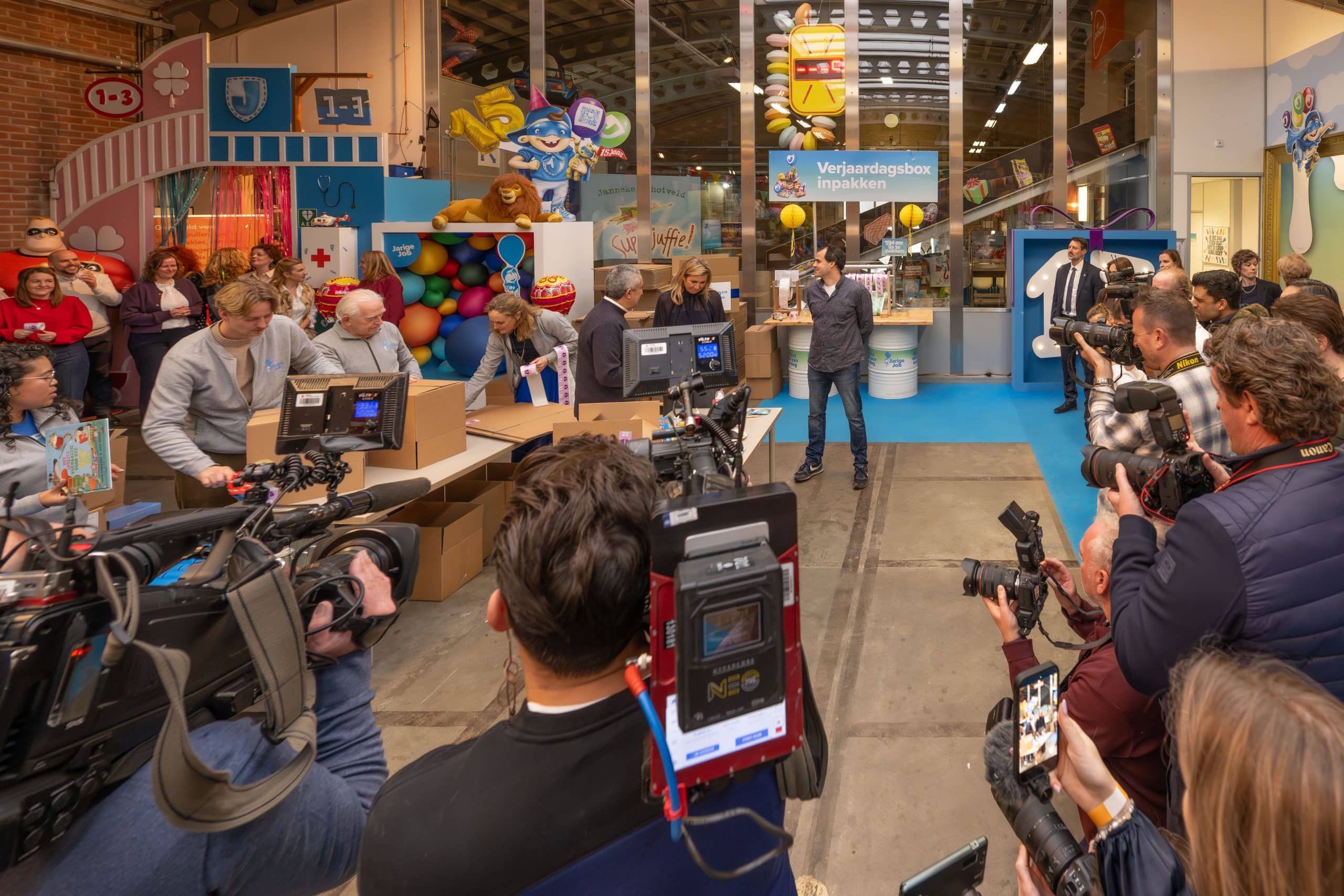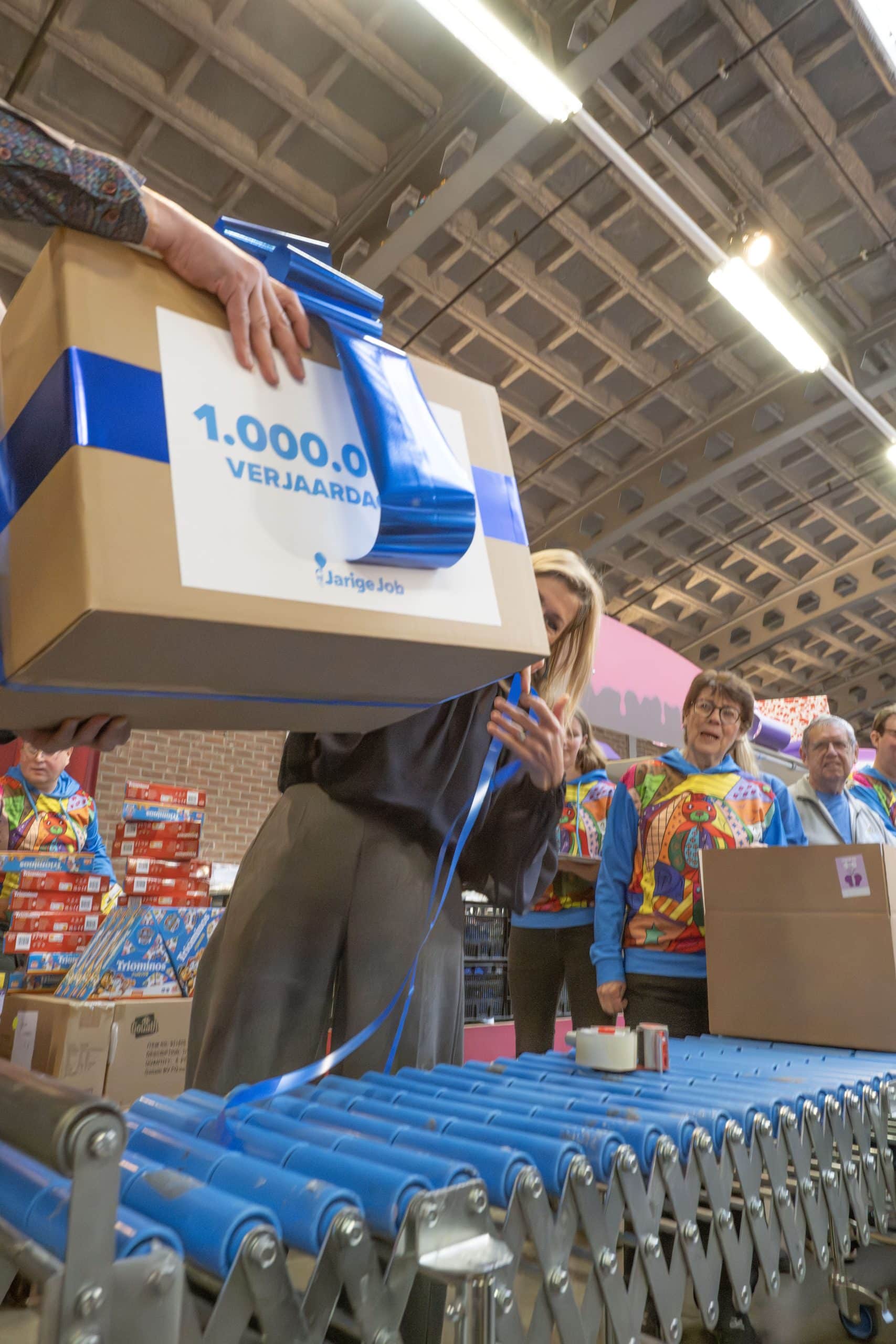 In de feestfabriek van Stichting Jarige Job in Rotterdam draaide alles op deze dag om terugblikken én vooruitkijken. Terwijl de inpakstraat op volle toeren draaide, werd stilgestaan bij wat er samen al is bereikt. Vorig jaar nog werd een enorme mijlpaal gevierd: in één jaar tijd werden maar liefst 176.909 verjaardagsboxen verstuurd. Een prestatie om trots op te zijn en tegelijk de opmaat naar iets nóg groters.