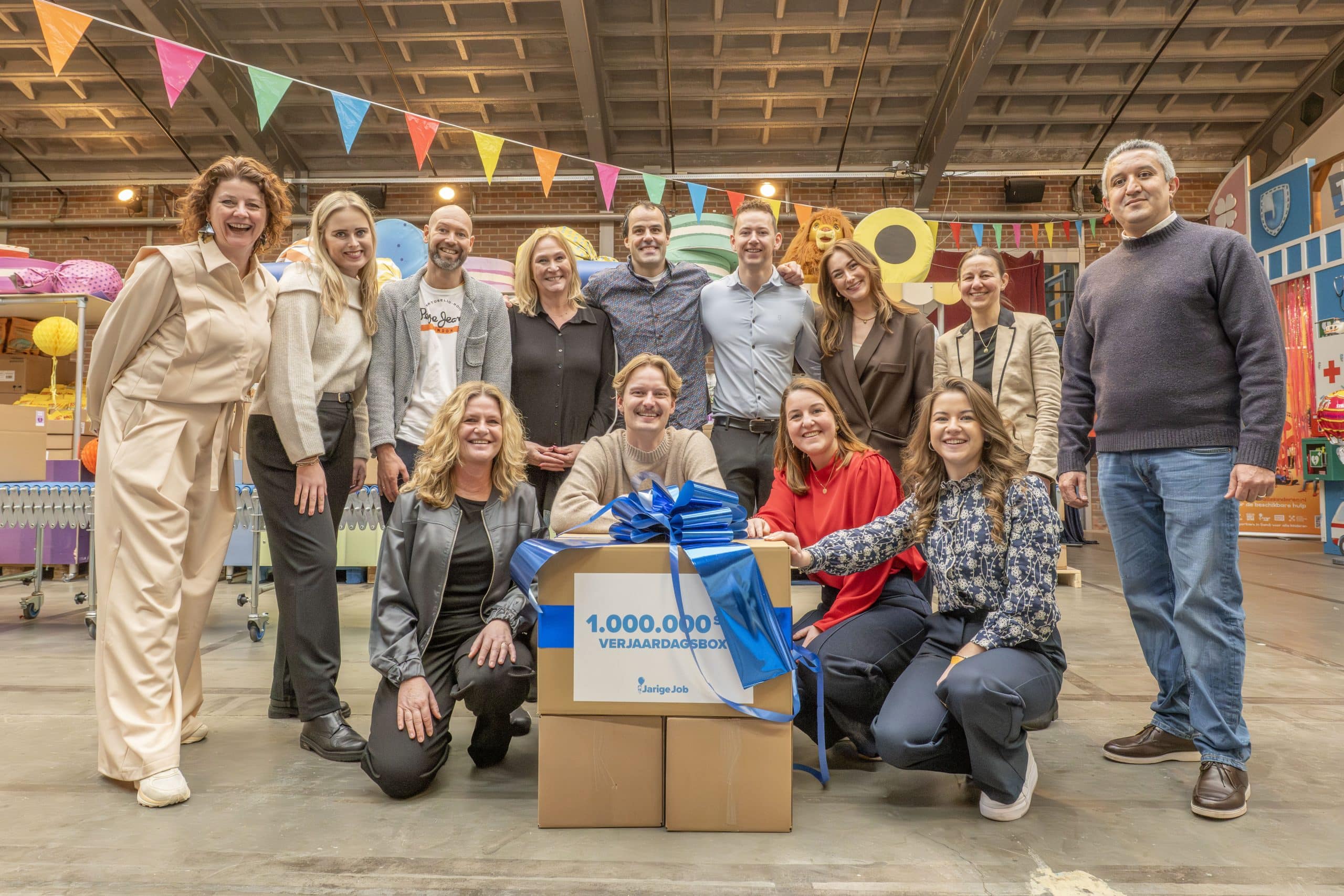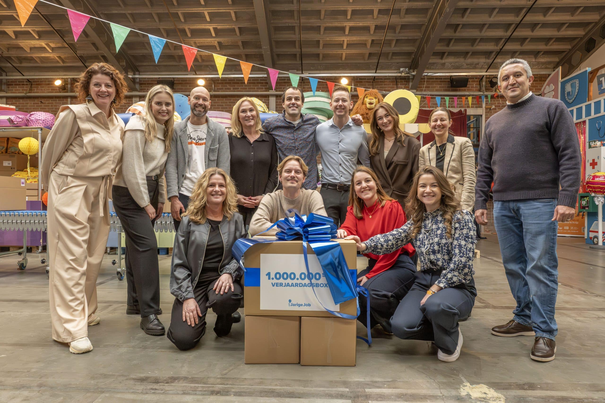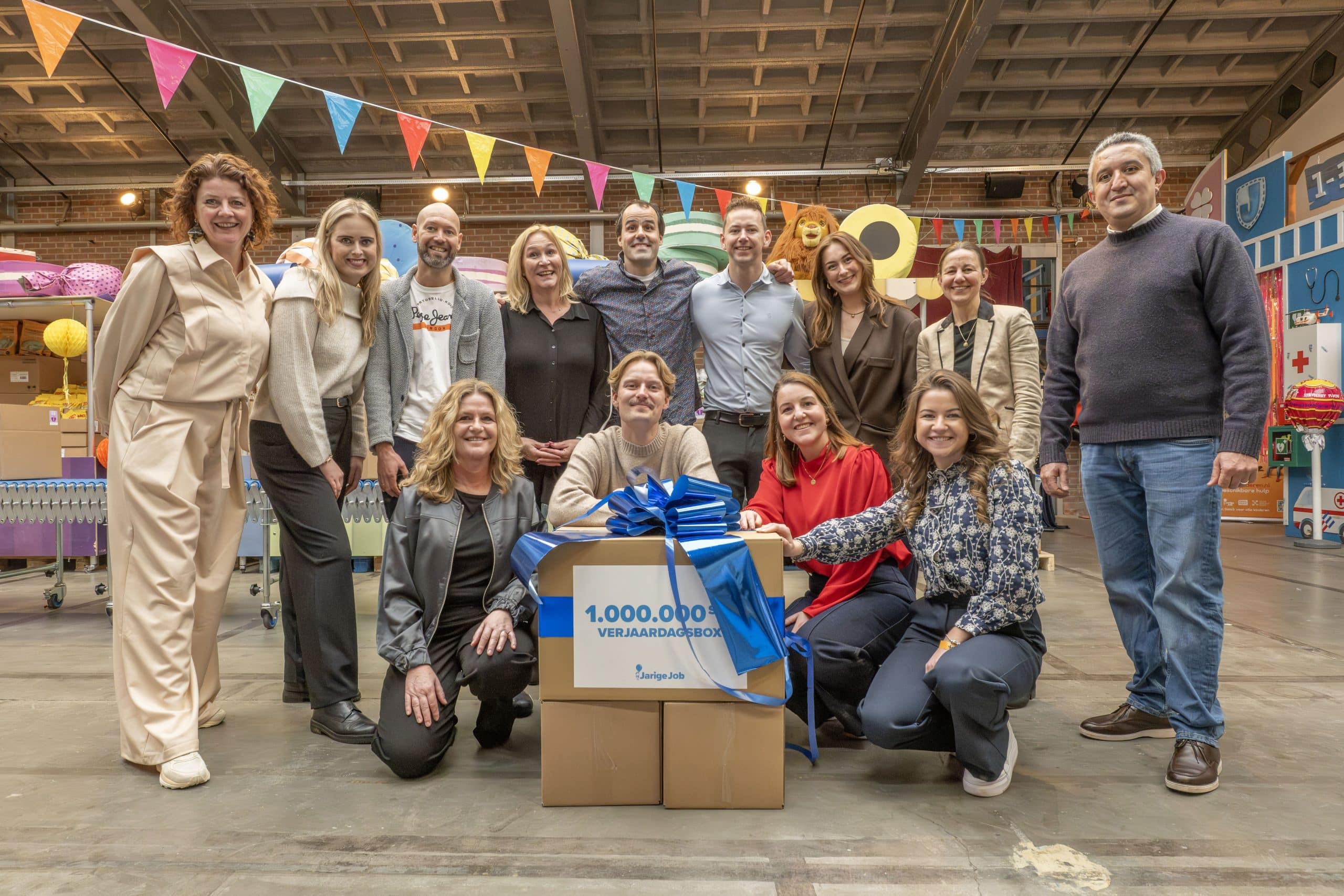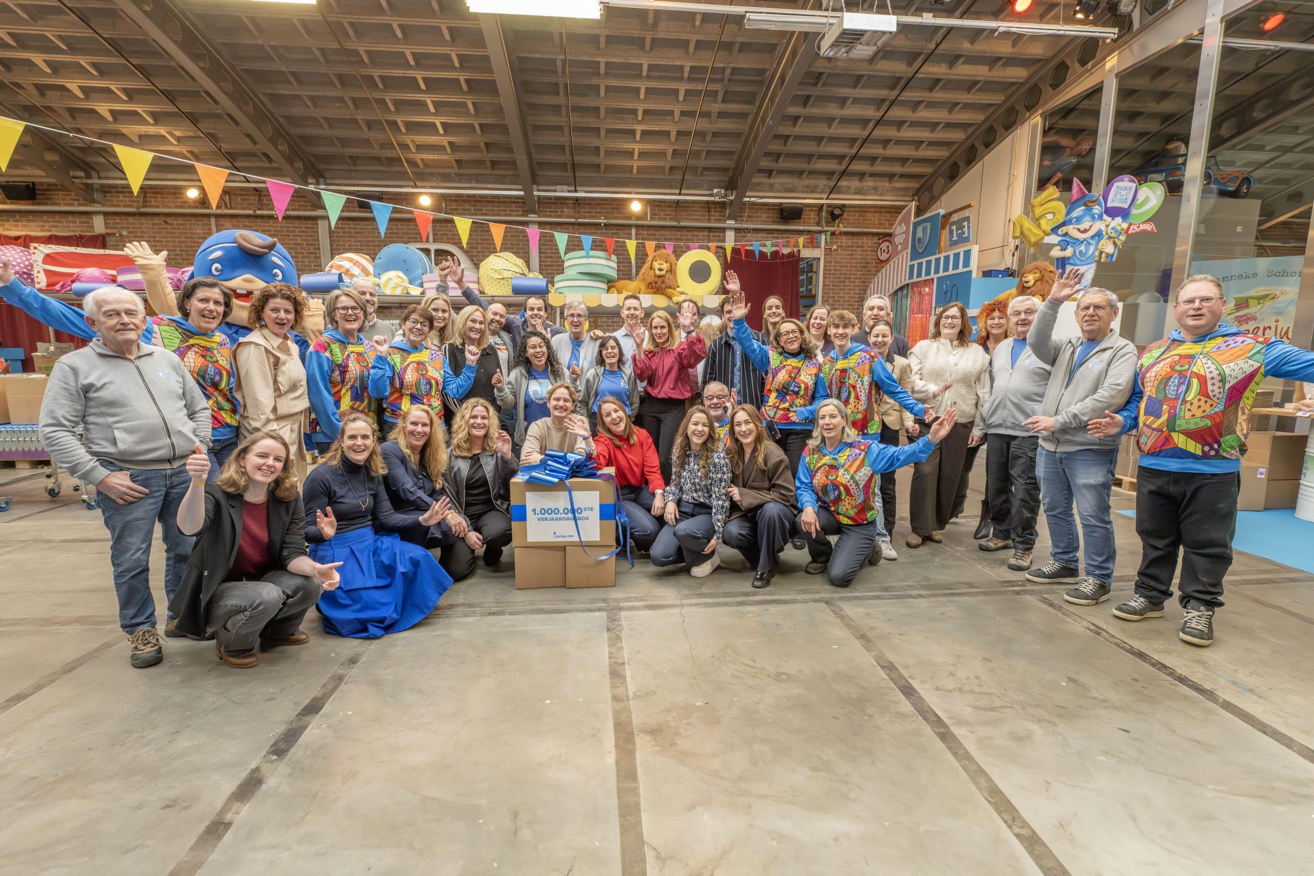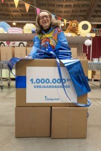 Het vieren van de miljoenste verjaardagsbox is vooral ook een moment om iedereen te bedanken. Aan onze ruim 150 vaste vrijwilligers, aan de duizenden mensen die zich door de jaren heen hebben ingezet om verjaardagsboxen in te pakken én te financieren, en aan de partners die ervoor kiezen om Stichting Jarige Job te steunen. Door al deze hulp is het voor ons mogelijk om steeds meer kinderen te bereiken.