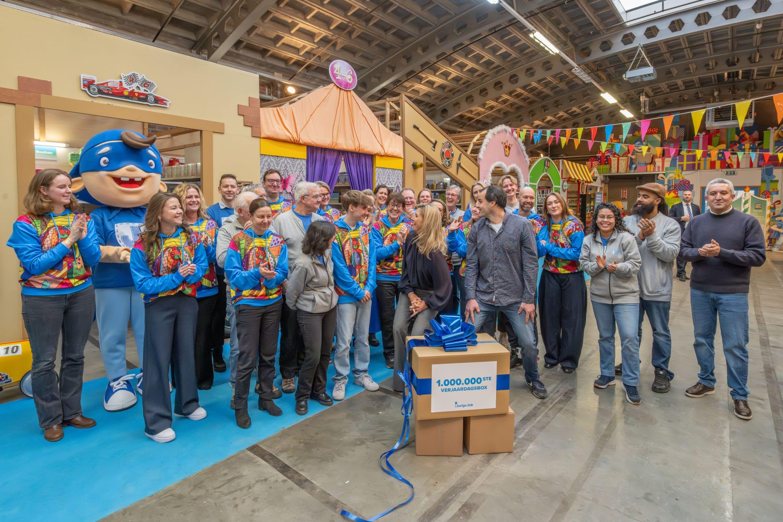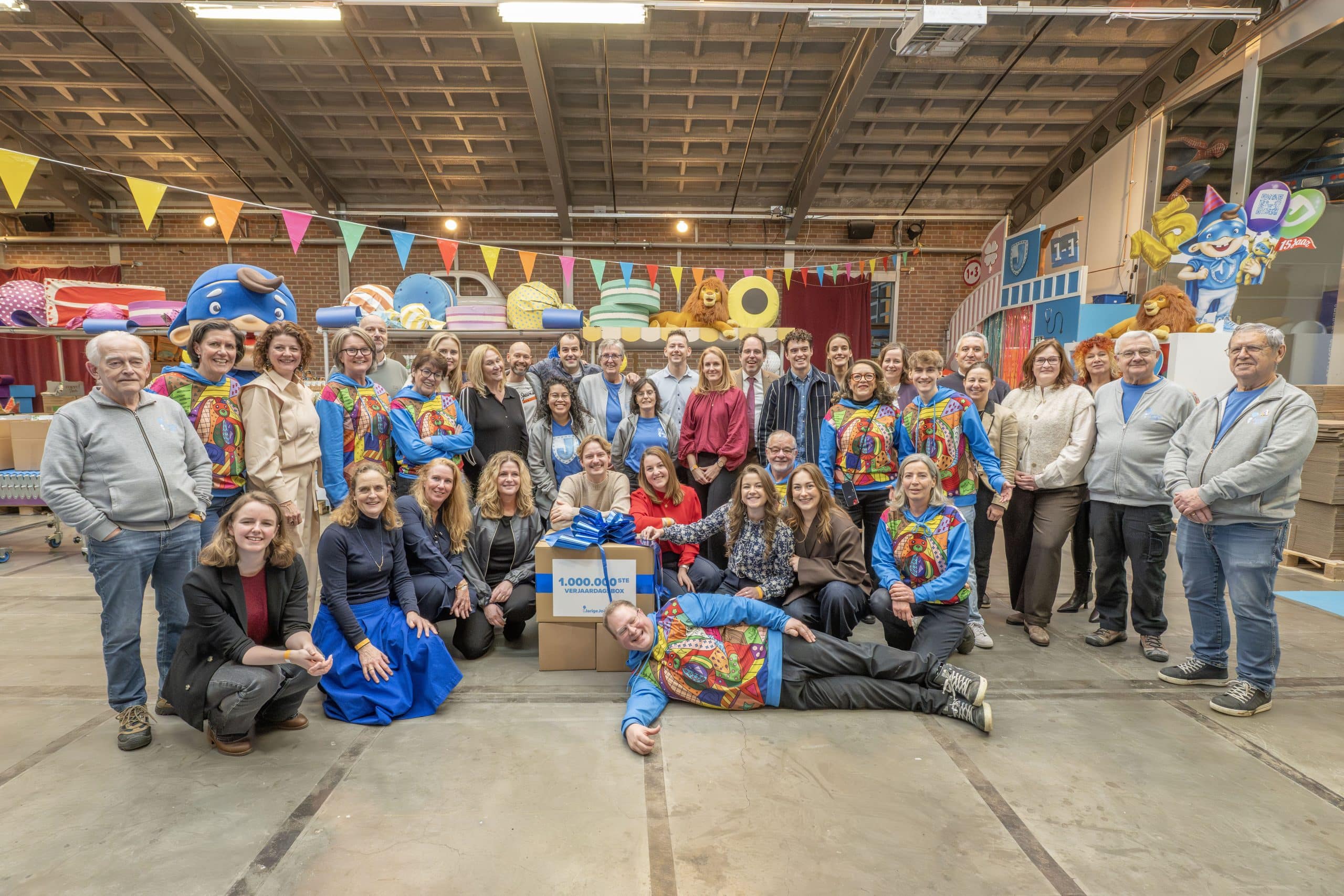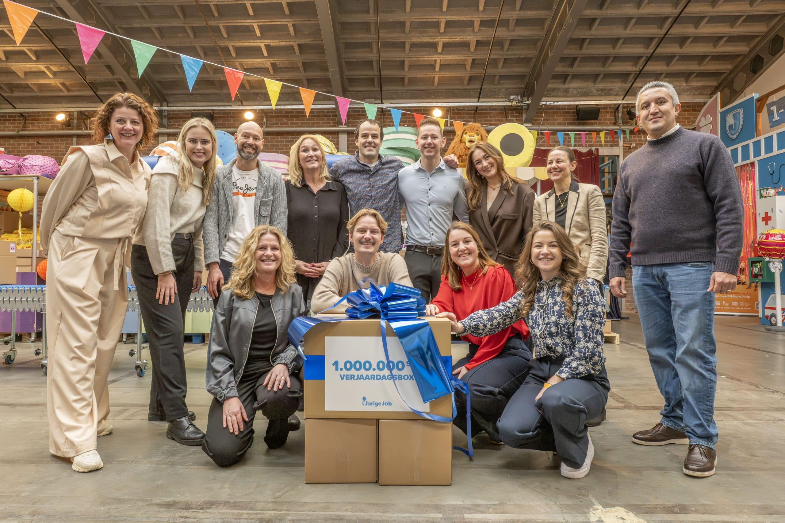 Het vieren van de miljoenste verjaardagsbox is vooral ook een moment om iedereen te bedanken. Aan onze ruim 150 vaste vrijwilligers, aan de duizenden mensen die zich door de jaren heen hebben ingezet om verjaardagsboxen in te pakken én te financieren, en aan de partners die ervoor kiezen om Stichting Jarige Job te steunen. Door al deze hulp is het voor ons mogelijk om steeds meer kinderen te bereiken.