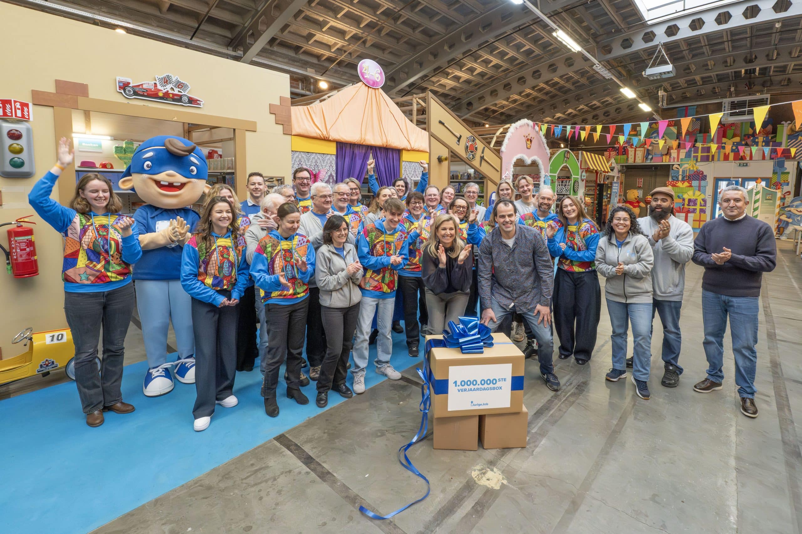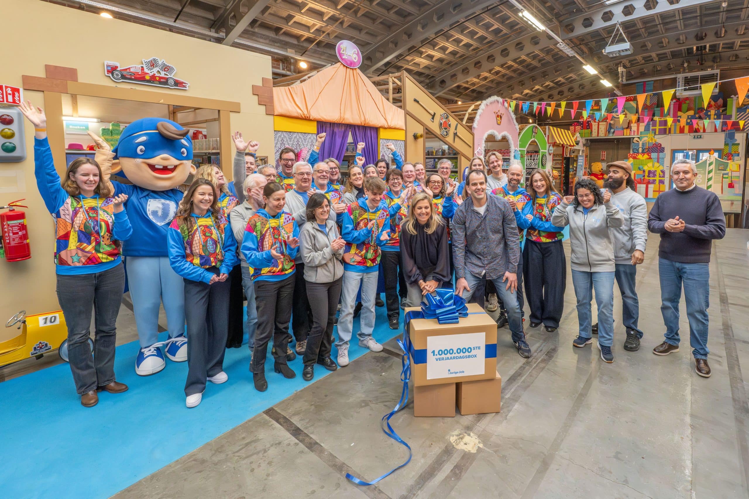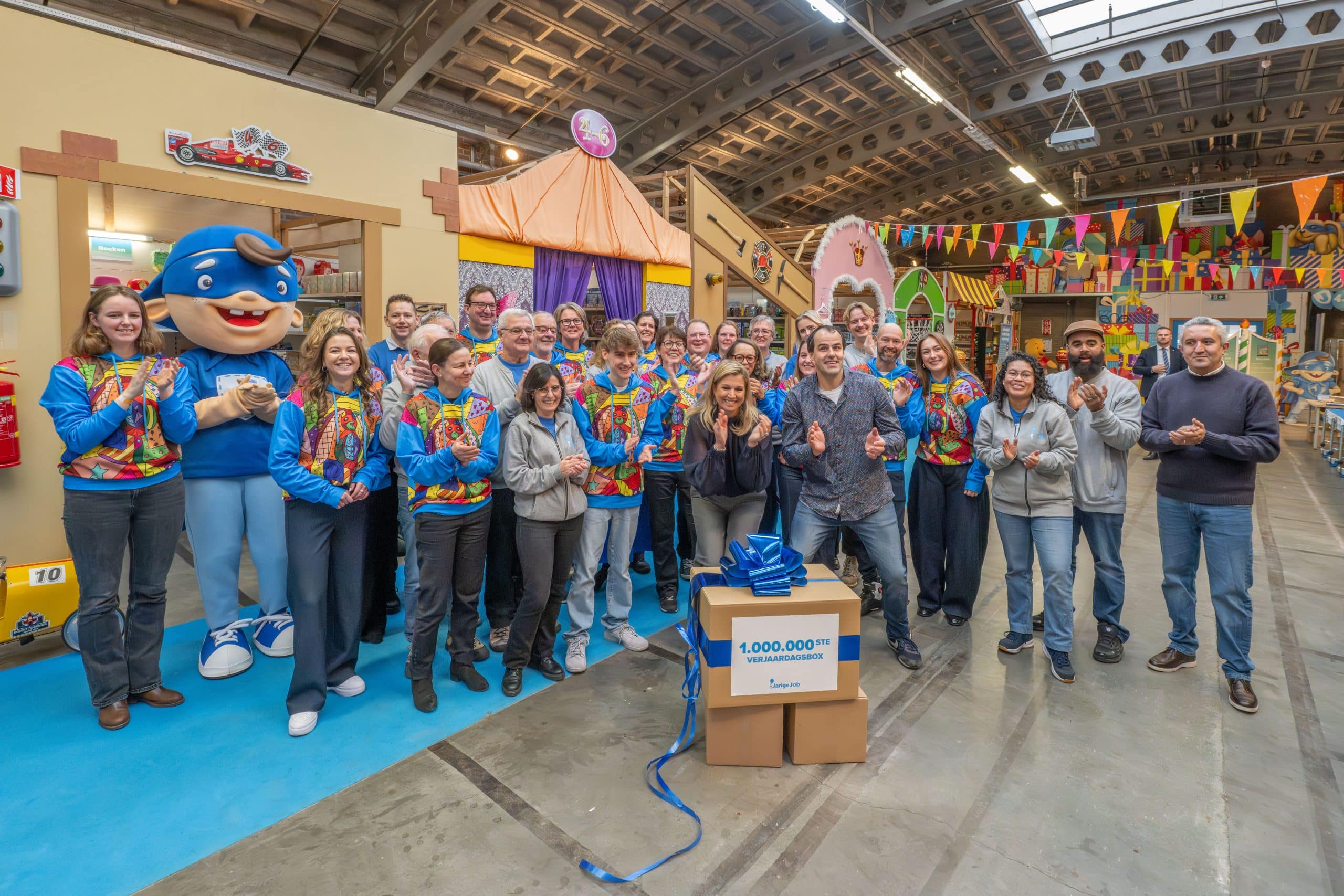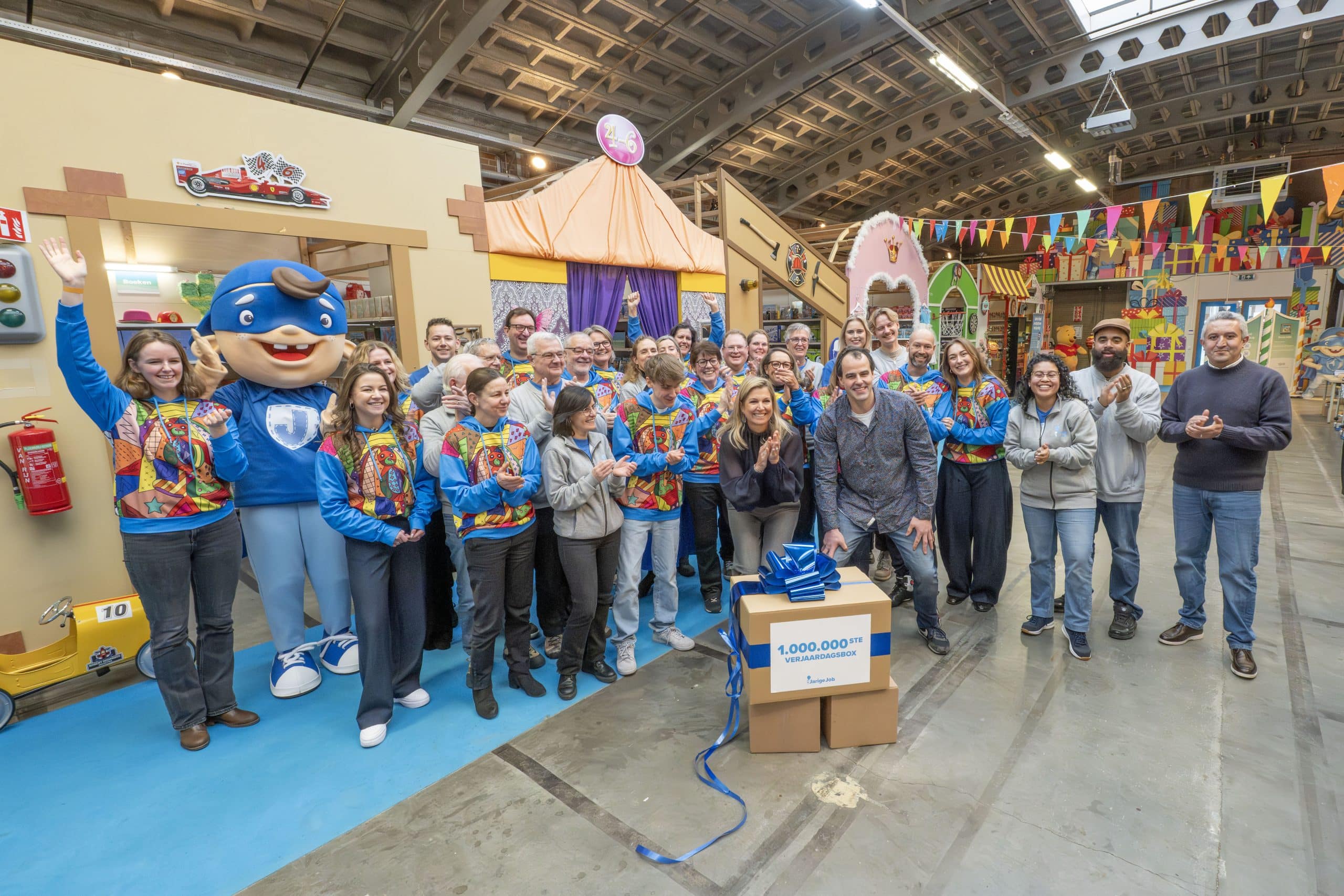 Het vieren van de miljoenste verjaardagsbox is vooral ook een moment om iedereen te bedanken. Aan onze ruim 150 vaste vrijwilligers, aan de duizenden mensen die zich door de jaren heen hebben ingezet om verjaardagsboxen in te pakken én te financieren, en aan de partners die ervoor kiezen om Stichting Jarige Job te steunen. Door al deze hulp is het voor ons mogelijk om steeds meer kinderen te bereiken.