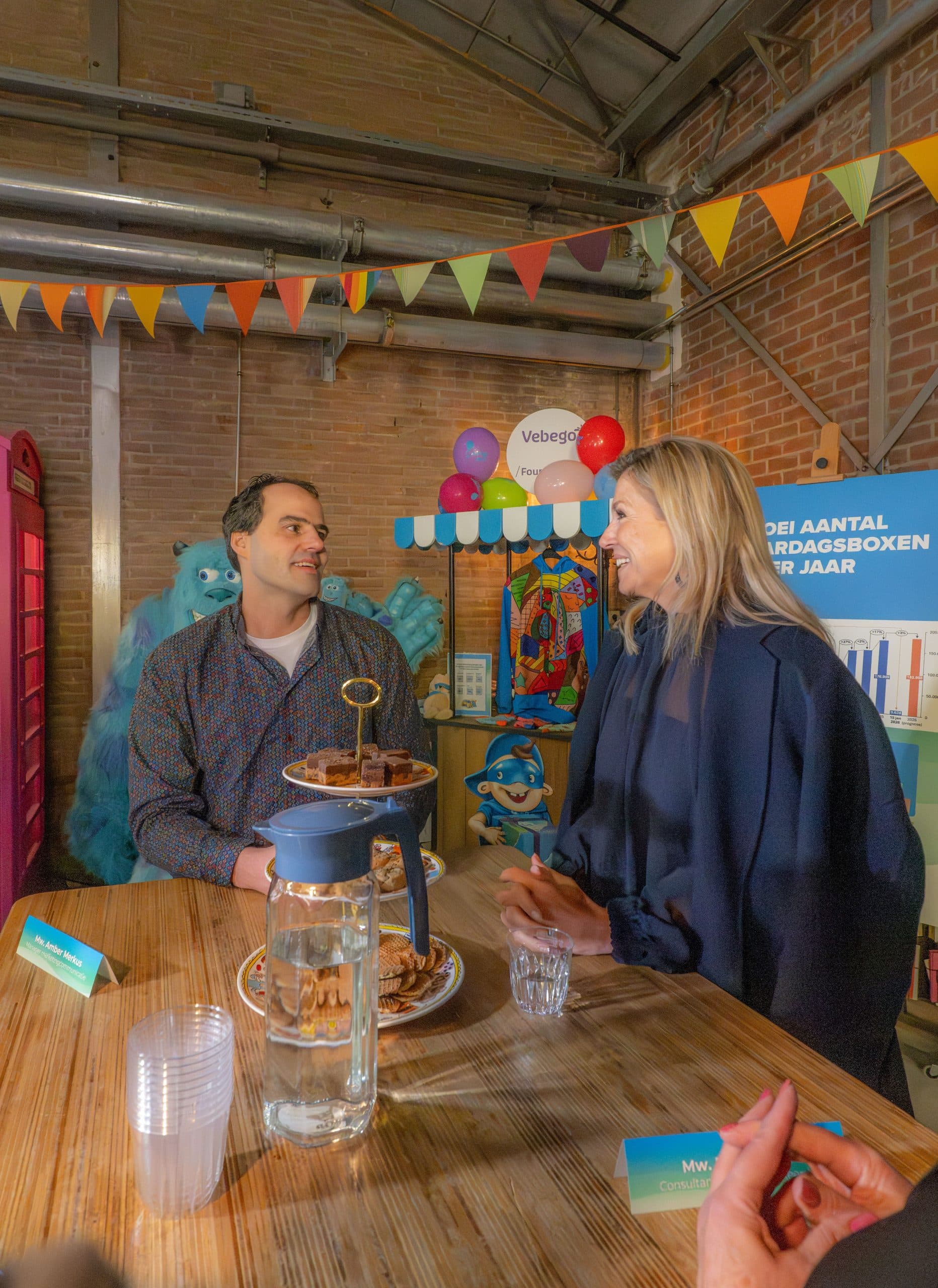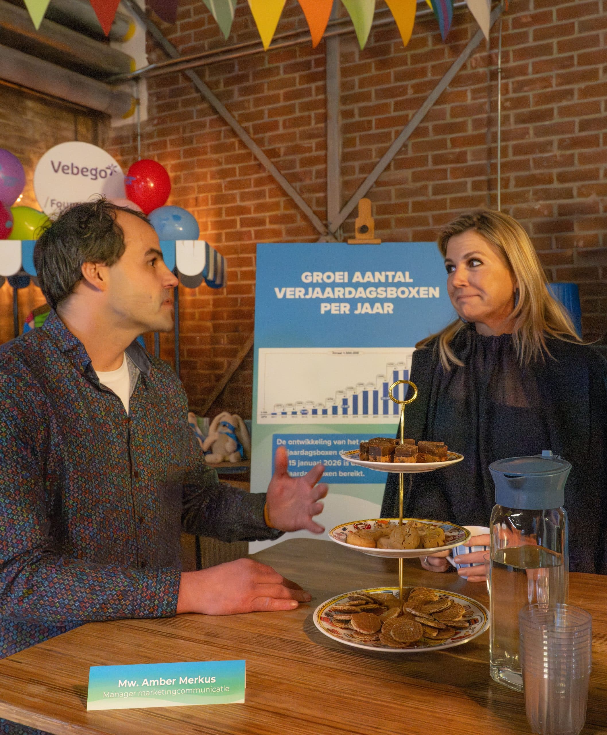 Tijdens het bezoek ging Koningin Máxima met medewerkers, vrijwilligers en de partners: PostNL, Postcode Loterij, NN Group en Volker Wessels, in gesprek over de impact van de verjaardagsboxen en de groei van de stichting. Daarbij stond centraal hoe samenwerking met maatschappelijke organisaties zoals Stichting Leergeld en Sam& voor alle kinderen helpt om steeds meer kinderen te bereiken.