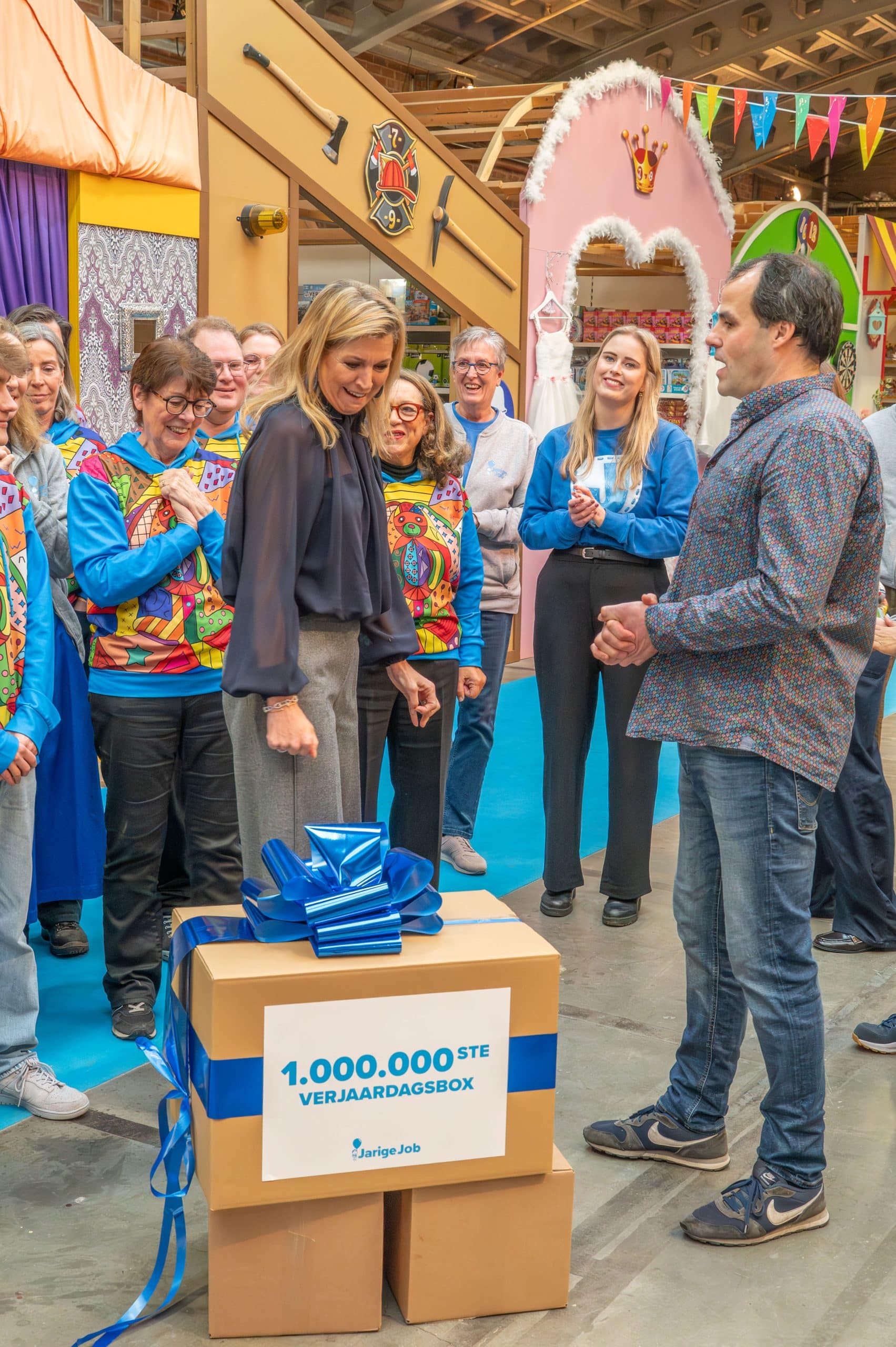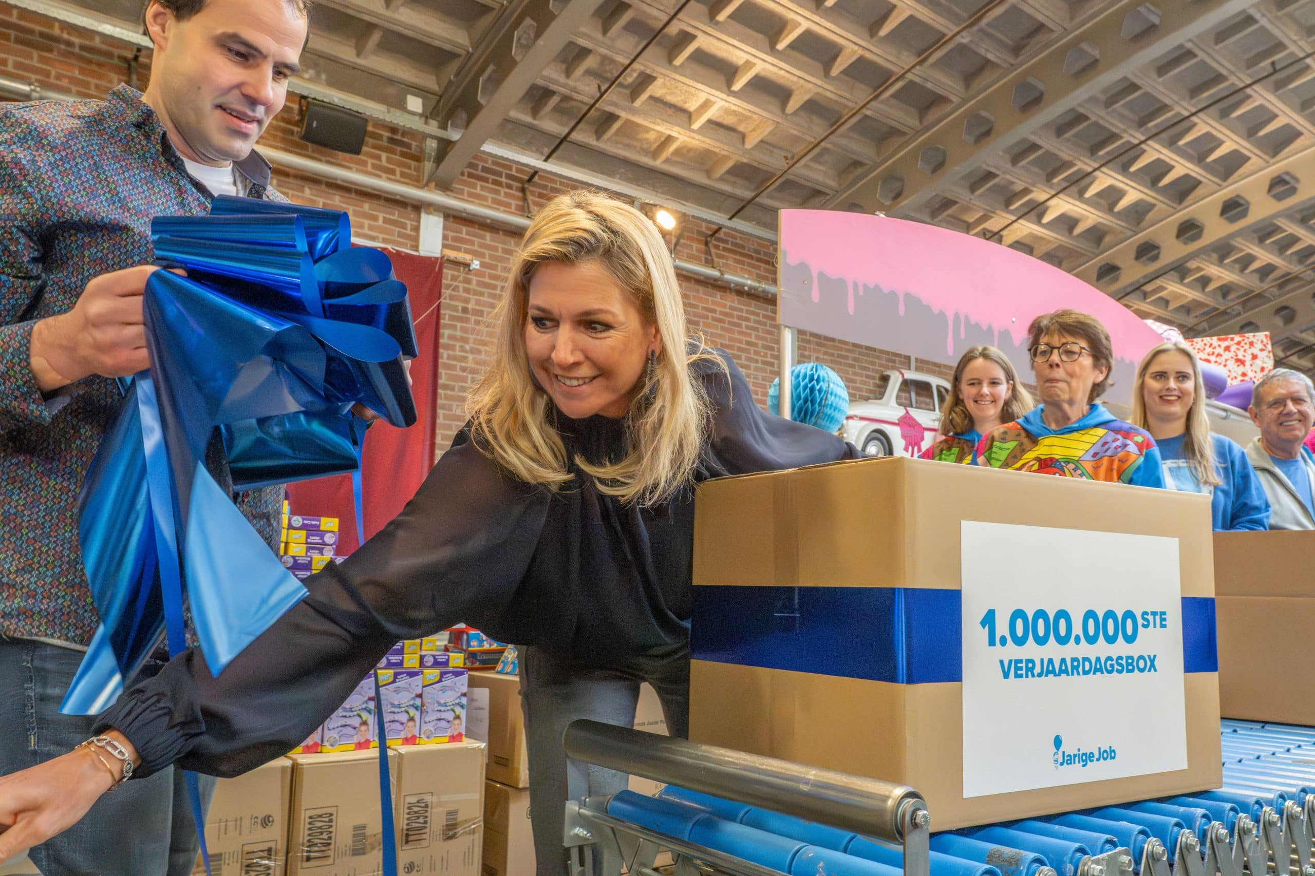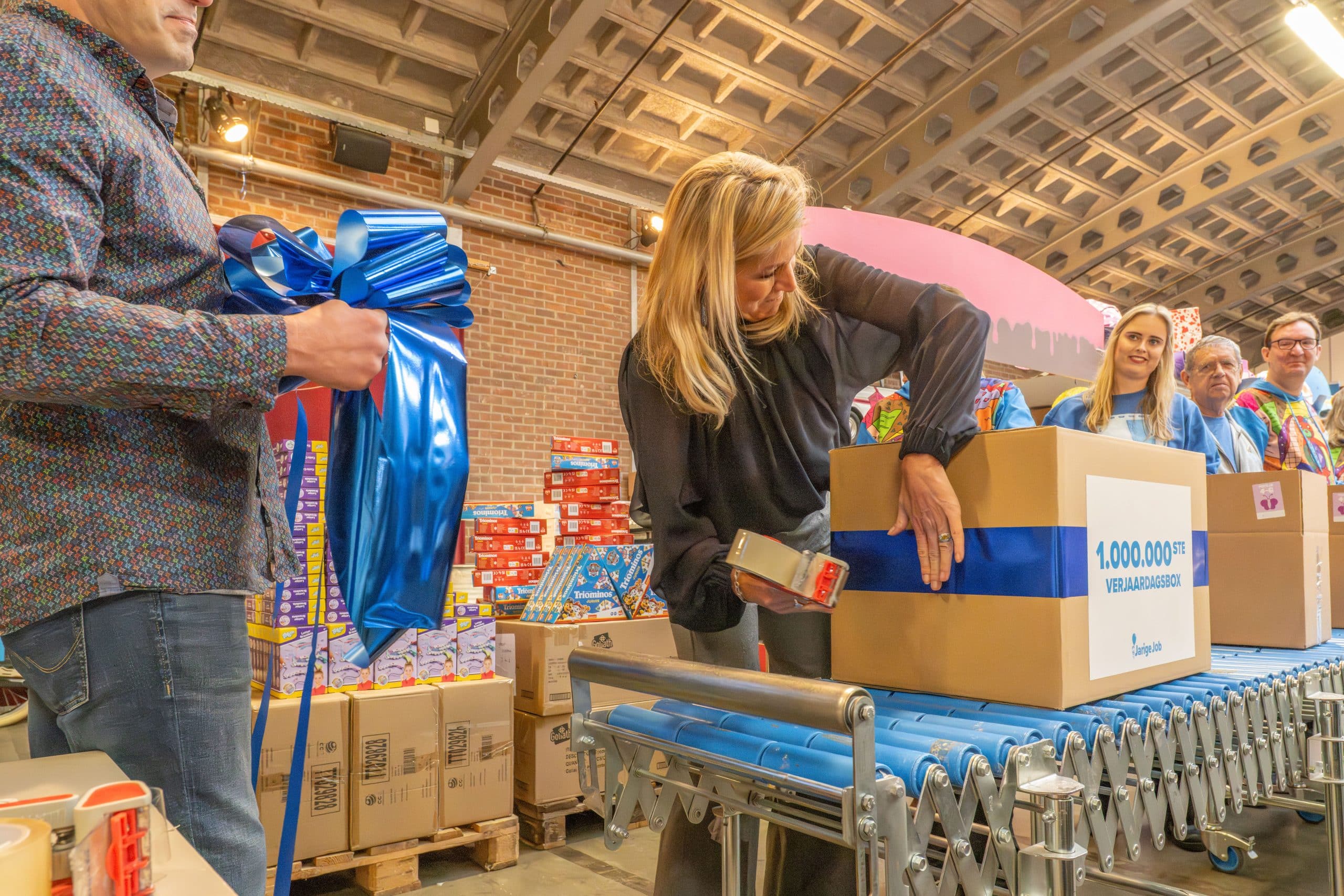 Als kers op de taart, pakte Koningin Máxima daarna zelf mee in de feestelijke inpakstraat, tot aan dé miljoenste verjaardagsbox. Een symbolisch én praktisch moment dat de gezamenlijke inzet voor kinderverjaardagen onderstreept.