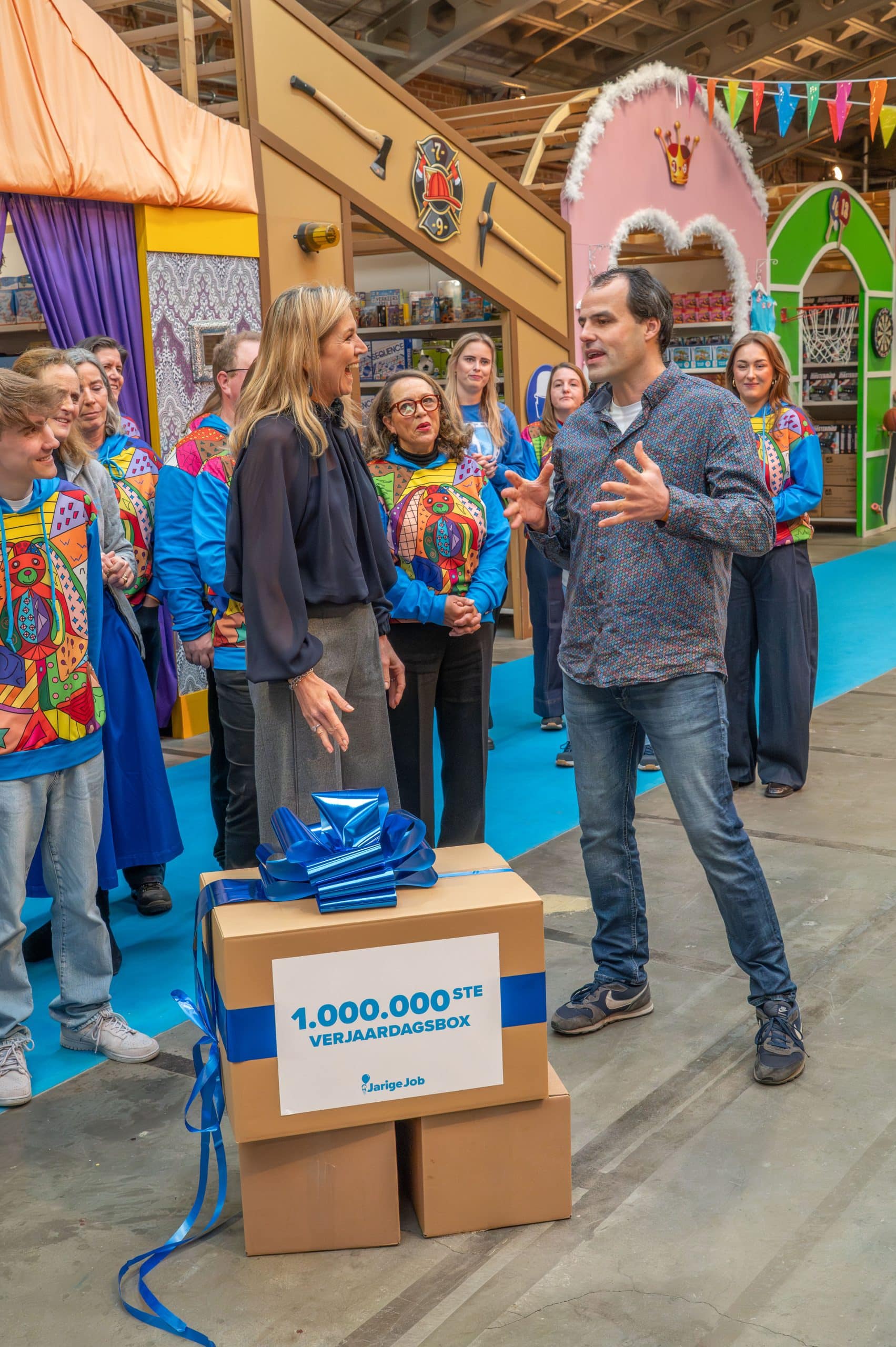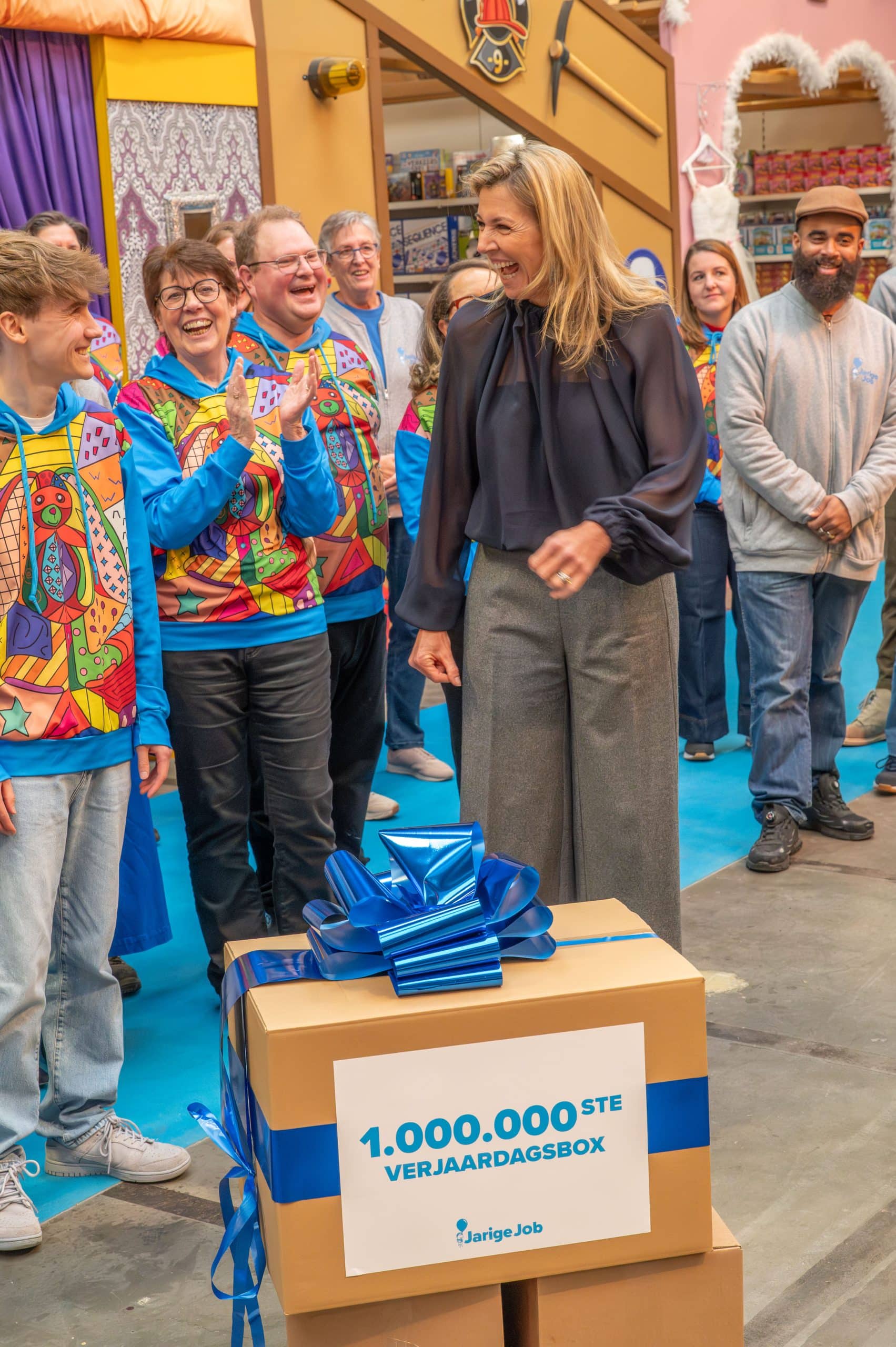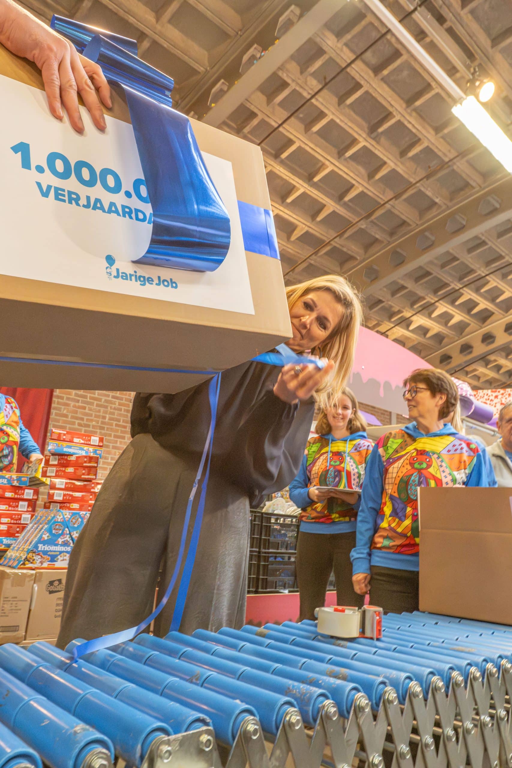 Als kers op de taart, pakte Koningin Máxima daarna zelf mee in de feestelijke inpakstraat, tot aan dé miljoenste verjaardagsbox. Een symbolisch én praktisch moment dat de gezamenlijke inzet voor kinderverjaardagen onderstreept.