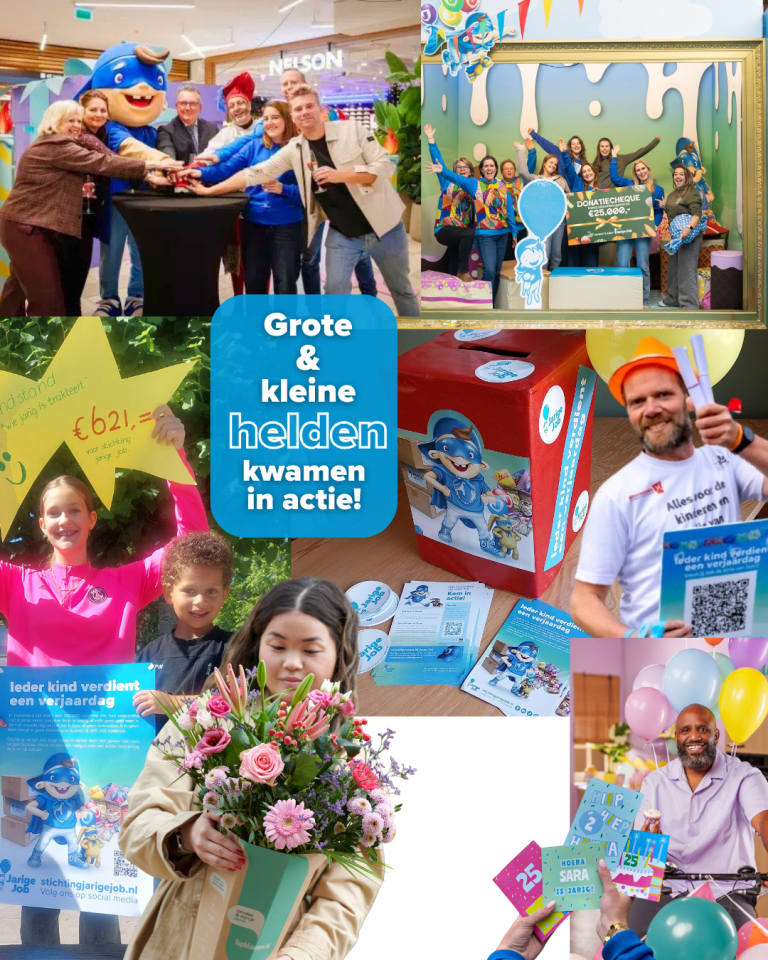 Samen met onze vrijwilligers, donateurs, partners, actievoerders en iedereen die zich inzet voor Stichting Jarige Job hebben we dit jaar een enorme impact kunnen maken voor kinderen uit gezinnen waar thuis geen geld is om een verjaardag te vieren.